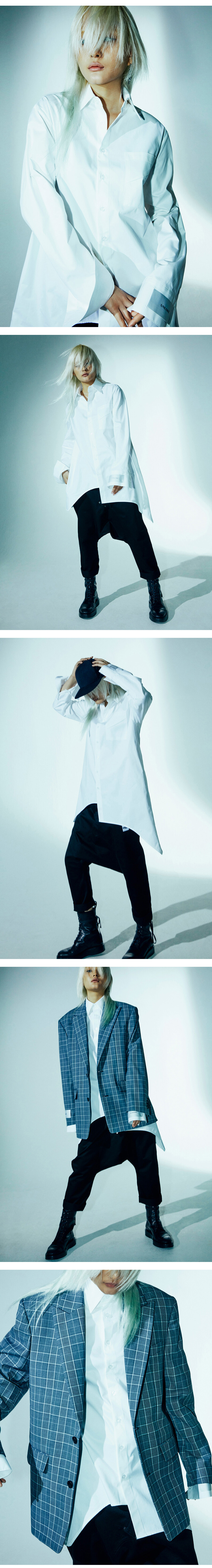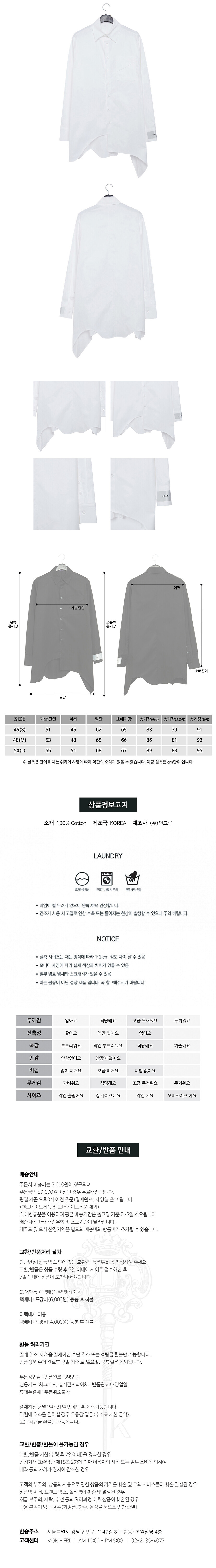 셔츠 밑단에 커브 컷팅을 하여 언발란스를 강조