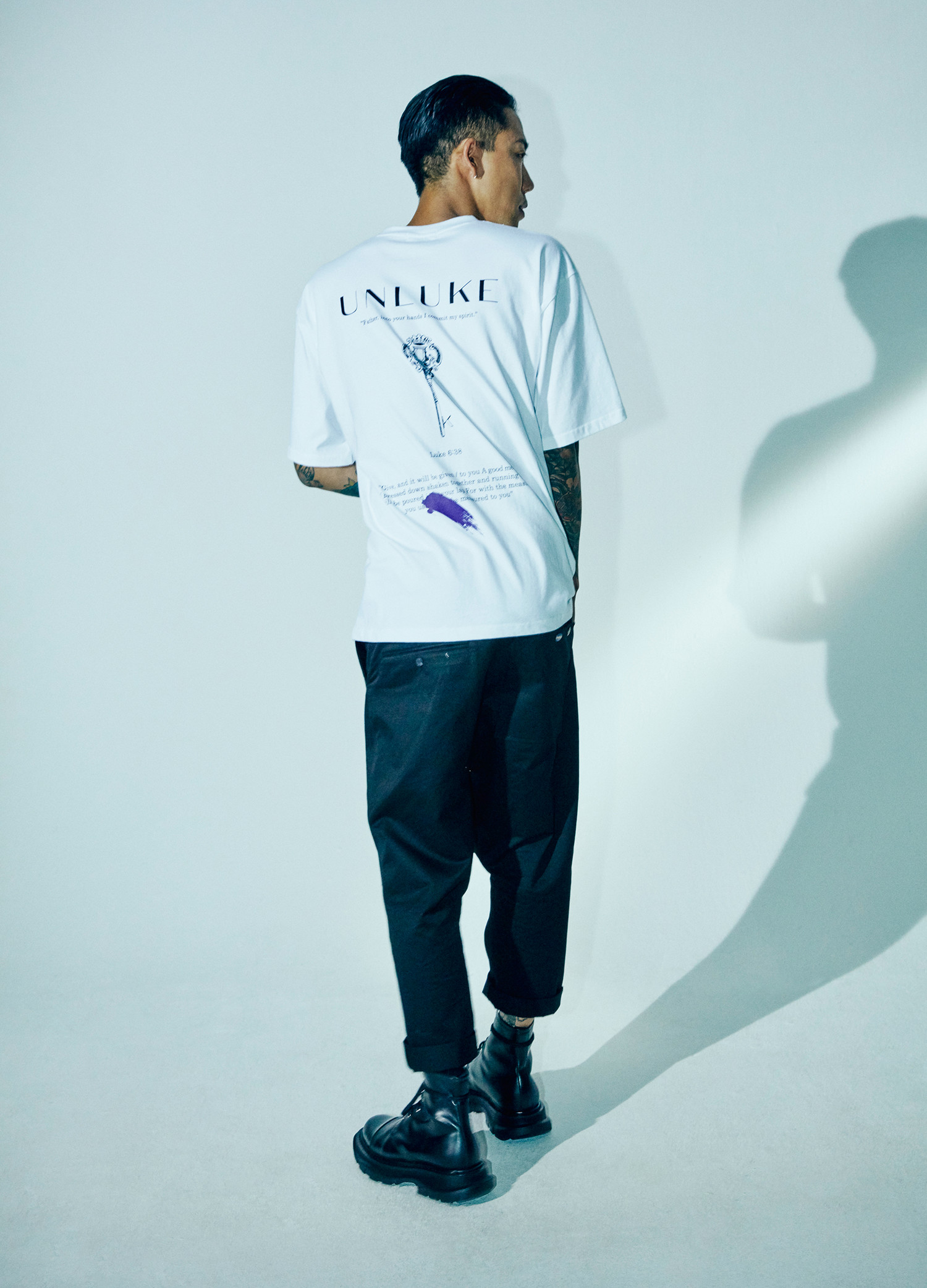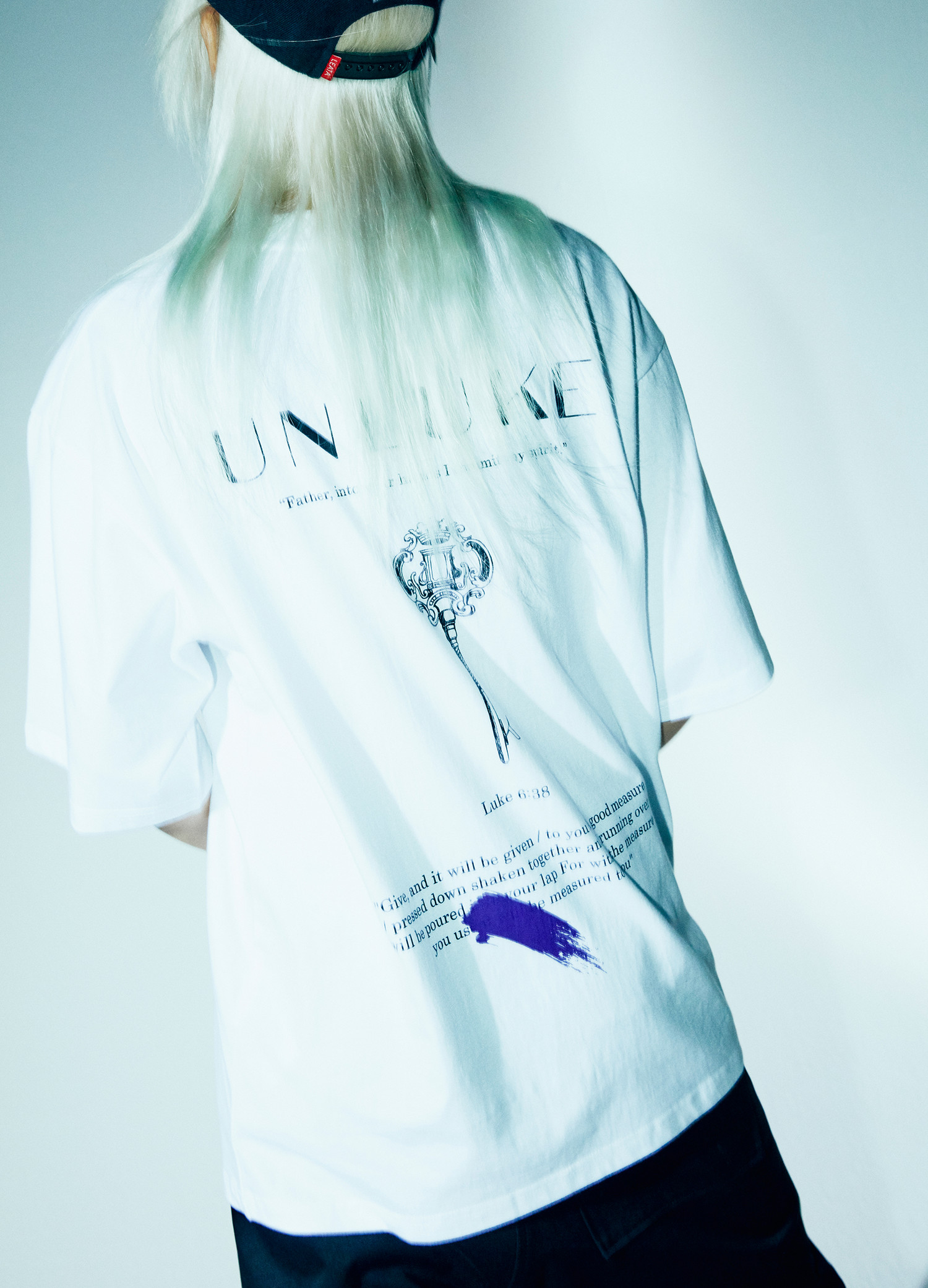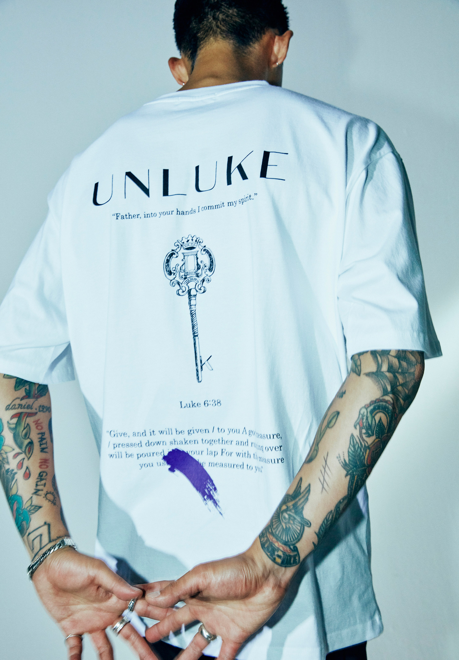 언크루 [UNISEX] OVERSIZED LUKE 6:38 KEY LOGO SHORT SLEEVE-WHT