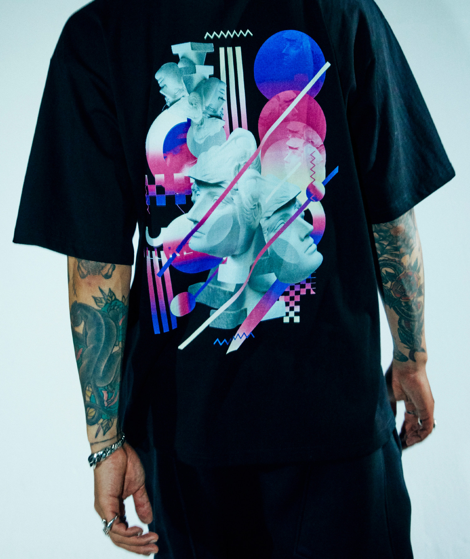 언크루 [UNISEX] OVERSIZED PLASTER CAST DIGITAL GRAPHIC SHORT SLEEVE-BLK