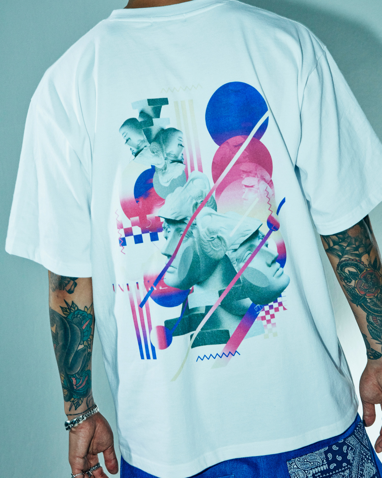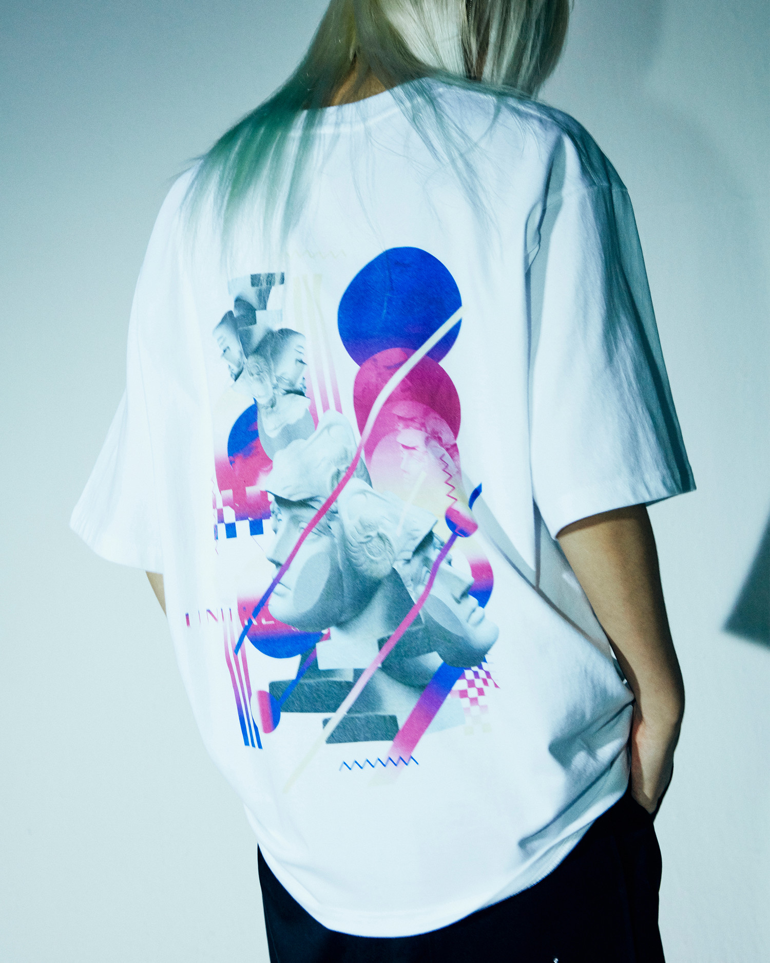 언크루 [UNISEX] OVERSIZED PLASTER CAST DIGITAL GRAPHIC SHORT SLEEVE-WHT