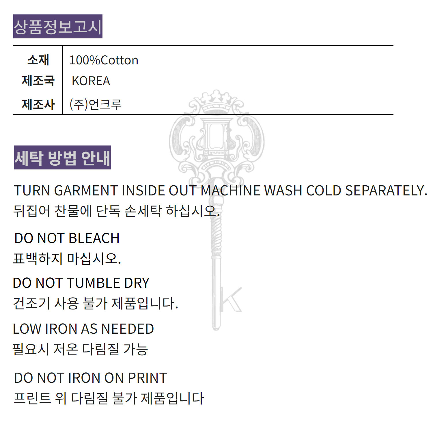 세탁후 수축과 변형을 최소화했습니다