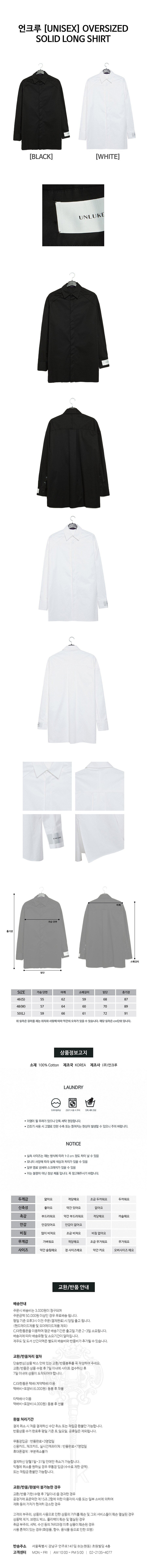 언크루 [UNISEX] OVERSIZED SOLID LONG SHIRT-WHT