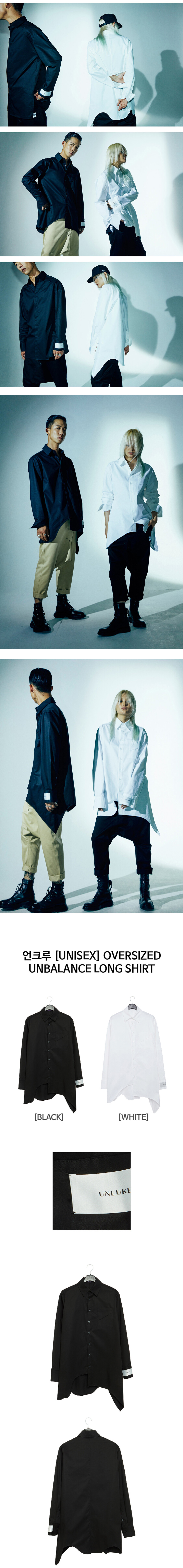 언크루 [UNISEX] OVERSIZED UNBALANCE LONG SHIRT-WHT